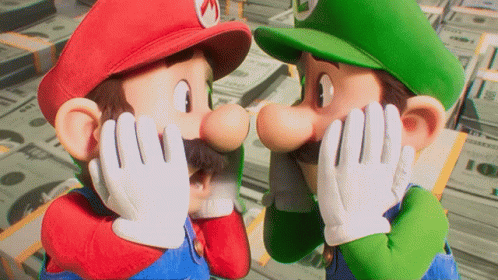 Paglalarawan ng Content: mario and luigi covering their faces with their hands in front of stacks of money