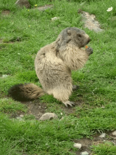 Paglalarawan ng Content: a squirrel eating a carrot in a grassy field