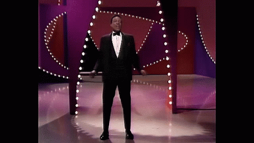 Paglalarawan ng Content: a man in a tuxedo and bow tie is standing in front of a stage with lights on it .