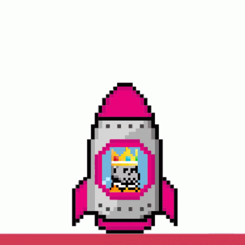 Paglalarawan ng Content: a pixel art illustration of a rocket with a cat wearing a crown