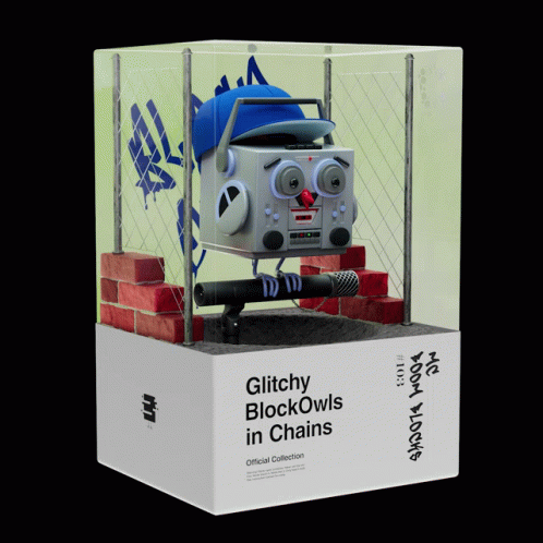 Paglalarawan ng Content: a box that says glitchy blockowls in chains