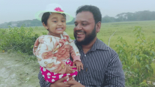 Paglalarawan ng Content: a man is holding a little girl in his arms and she is wearing a hat