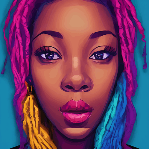 Paglalarawan ng Content: a close up of a woman 's face with colorful dreadlocks