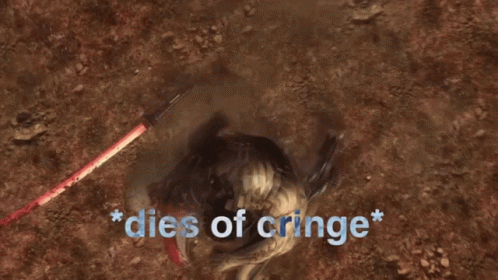 Paglalarawan ng Content: a video game character laying in the dirt with the words * dies of cringe *