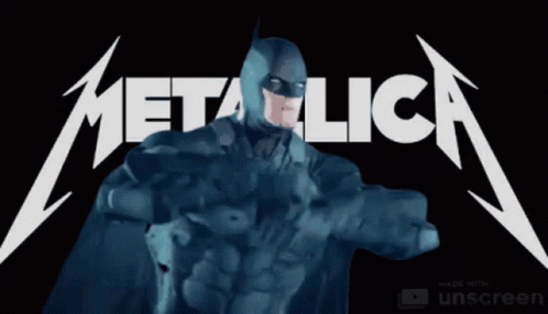 Paglalarawan ng Content: a batman standing in front of a metallica sign