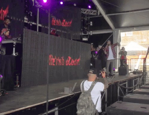 Paglalarawan ng Content: a man taking a picture of a stage with a sign that says metro glow