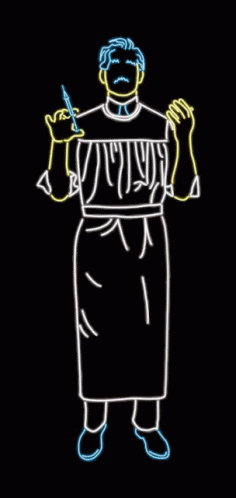Paglalarawan ng Content: a neon sign of a man holding a syringe in his hand on a black background .