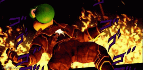Paglalarawan ng Content: a cartoon character with a green hat is surrounded by fire .