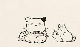 Paglalarawan ng Content: a black and white drawing of two cats laying next to each other .