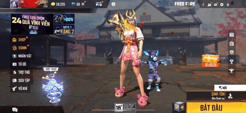Paglalarawan ng Content: a screenshot of a game called free fire shows a girl holding a gun