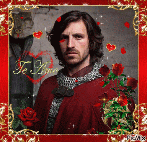 Paglalarawan ng Content: a picture of a man in a red cape with roses and the words te amo on it