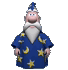 Paglalarawan ng Content: a cartoon wizard is wearing a blue robe with stars on it and a hat .