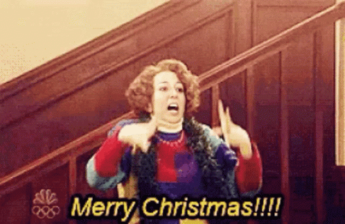 Paglalarawan ng Content: a woman is sitting on a staircase and saying merry christmas !!!