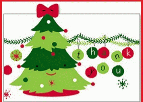 Paglalarawan ng Content: a christmas card with a christmas tree and the words " thank you "