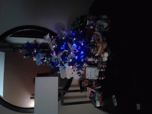 Paglalarawan ng Content: a christmas tree with blue lights is on a table