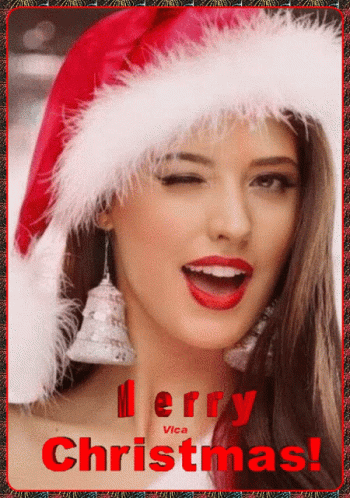 Paglalarawan ng Content: a picture of a woman wearing a santa hat with the words merry christmas on it