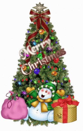 Paglalarawan ng Content: a merry christmas tree with a snowman and presents underneath