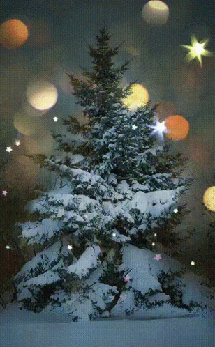 Paglalarawan ng Content: a christmas tree is covered in snow and surrounded by stars