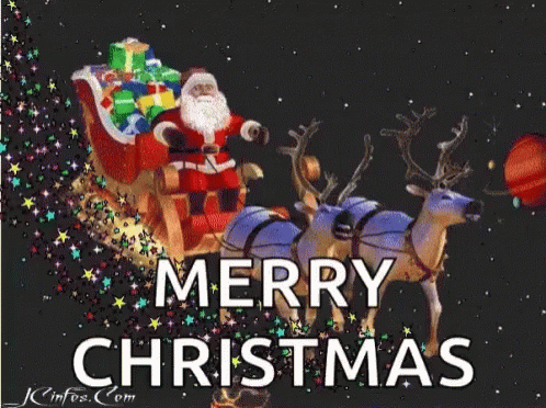 Paglalarawan ng Content: a merry christmas greeting card with santa in a sleigh