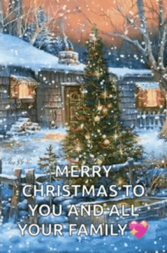 Paglalarawan ng Content: merry christmas to you and all your family with a christmas tree in front of a cabin