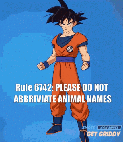 Paglalarawan ng Content: a picture of a cartoon character with the words rule 6742 : please do not abbreviate animal names