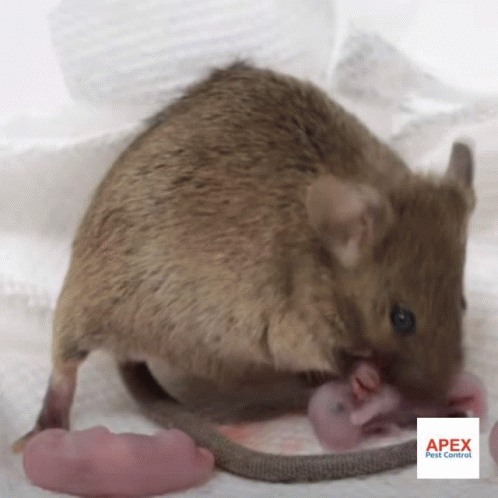 Paglalarawan ng Content: a mouse is laying on a white surface with a logo for apex pest control