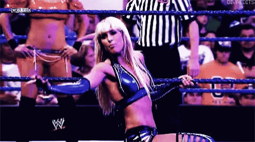 Paglalarawan ng Content: a woman in a wrestling ring with a referee in the background
