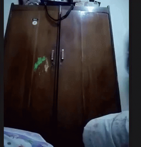 Paglalarawan ng Content: a wooden wardrobe with a sticker on it that says ' i '