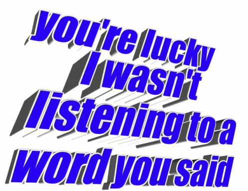 Paglalarawan ng Content: a 3d graphic that says you 're lucky i wasn 't listening to a word you said