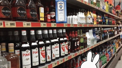 Paglalarawan ng Content: bottles of pimm 's and bombay sapphire on a shelf