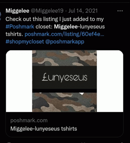 Paglalarawan ng Content: a screenshot of a poshmark advertisement for miggelee-lunyeseus shirts