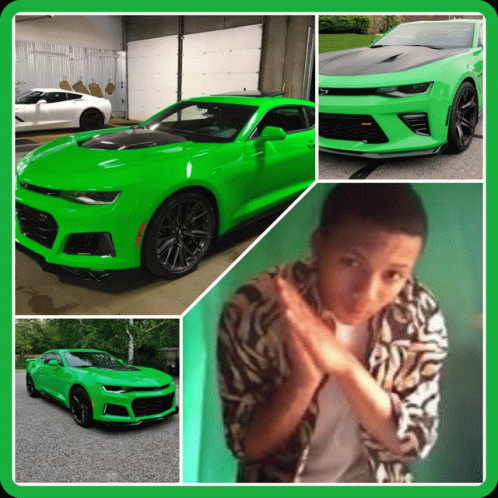 Paglalarawan ng Content: a collage of a green car and a man