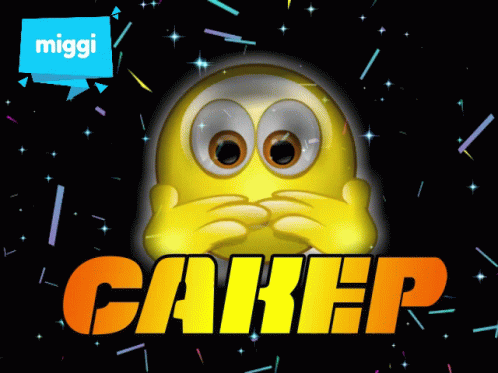 Paglalarawan ng Content: a surprised smiley face with the word cakep in orange