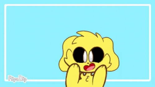 Paglalarawan ng Content: a cartoon of a yellow dog with black eyes and a blue background .