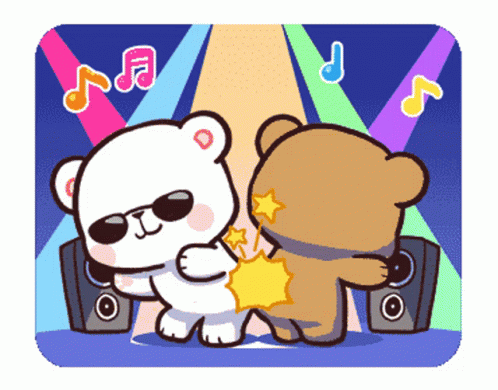 Paglalarawan ng Content: a cartoon of two teddy bears dancing in front of speakers and music notes