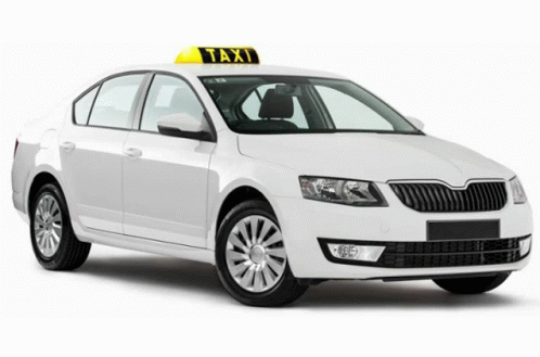 Paglalarawan ng Content: a white car with a yellow taxi sign on top