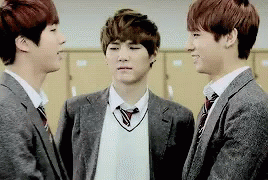 Paglalarawan ng Content: a group of young men in suits and ties are standing next to each other .