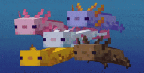 Paglalarawan ng Content: a bunch of axolotls of different colors are swimming in the water