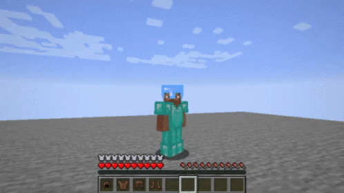 Paglalarawan ng Content: a minecraft character wearing a blue helmet is standing in front of a blue sky