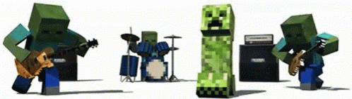Paglalarawan ng Content: a group of minecraft characters playing instruments including a creeper
