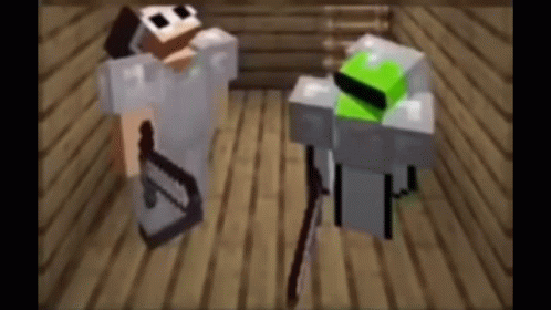 Paglalarawan ng Content: two minecraft characters are standing next to each other in a wooden room .