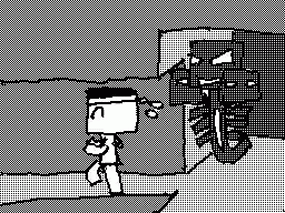 Paglalarawan ng Content: a black and white cartoon of a person with a box on their head walking in front of a wall .