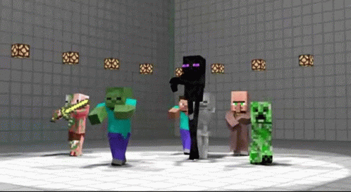 Paglalarawan ng Content: a group of minecraft characters are dancing together in a circle .
