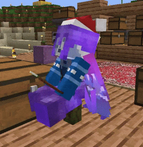 Paglalarawan ng Content: a purple minecraft character is wearing a santa hat and holding a sword