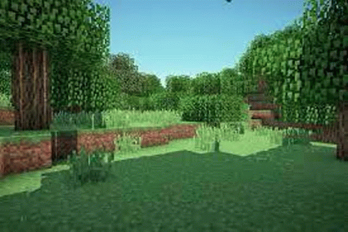 Paglalarawan ng Content: a minecraft scene with trees and grass and a blue sky