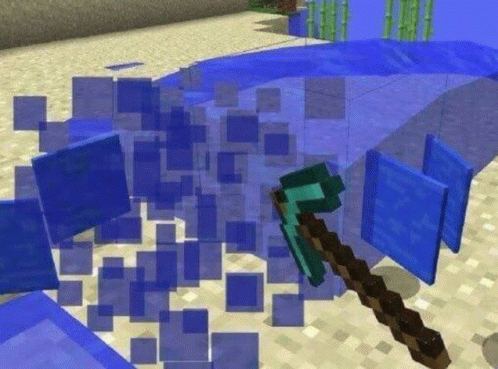 Paglalarawan ng Content: a minecraft game with a pickaxe and a bunch of blue cubes floating in the air .