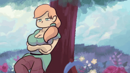 Paglalarawan ng Content: a cartoon of a girl leaning against a tree