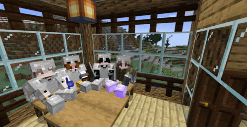 Paglalarawan ng Content: a group of minecraft characters sitting at a table