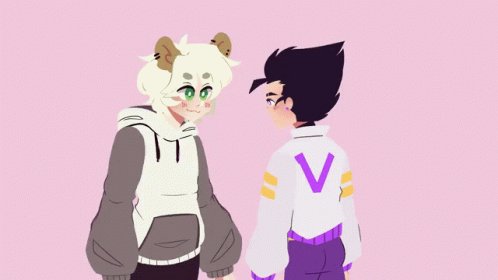 - Paglalarawan ng Content: a drawing of a boy and a girl standing next to each other with the boy wearing a sweater with the letter v on it