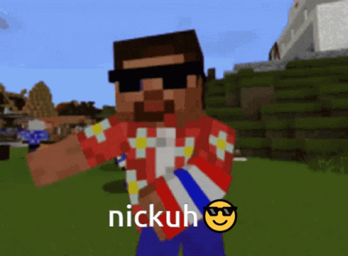 Paglalarawan ng Content: a minecraft character wearing sunglasses and a red shirt with the word nickuh on it
